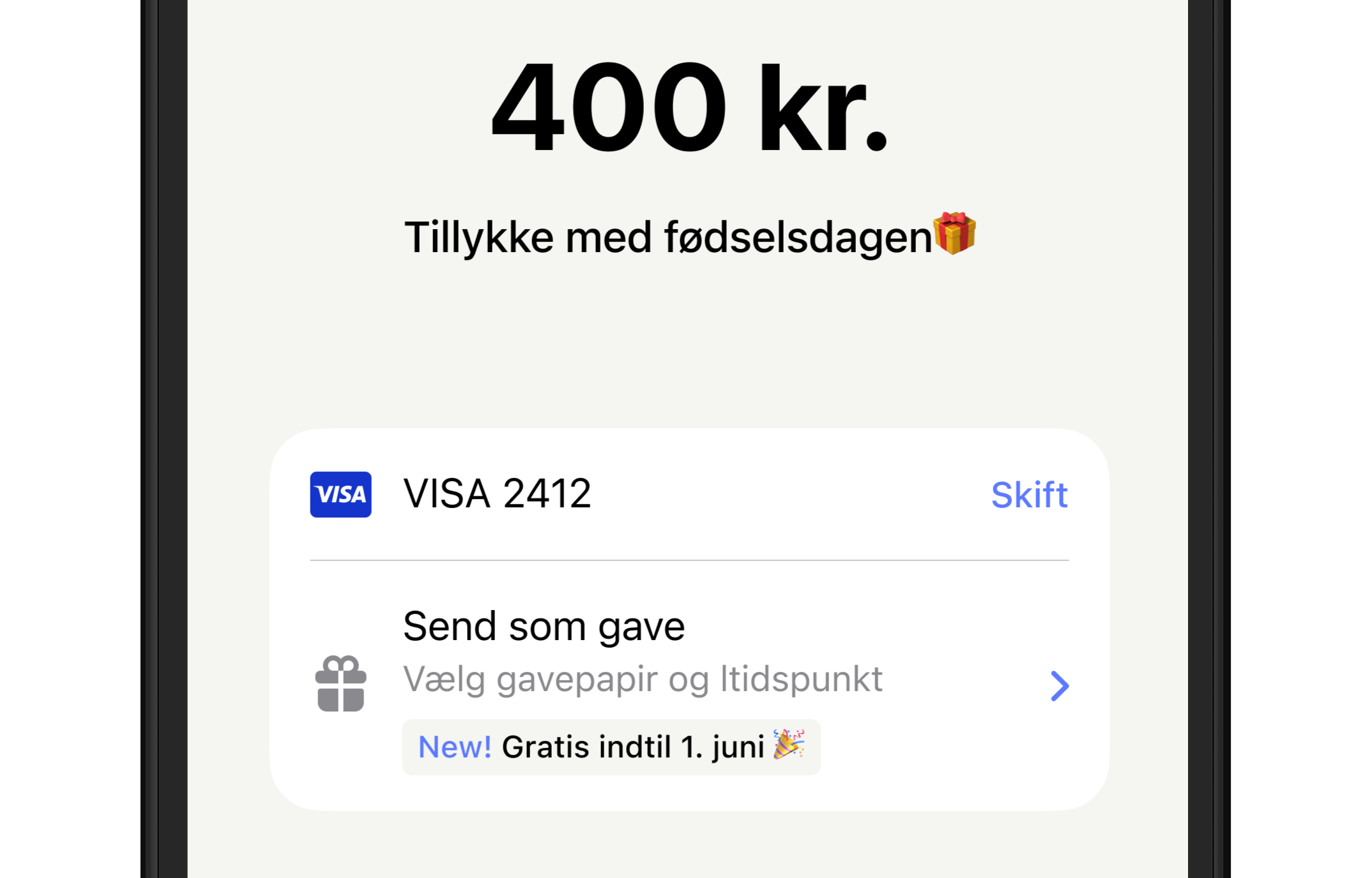 Du kan ikke sende gavekort i den nye app